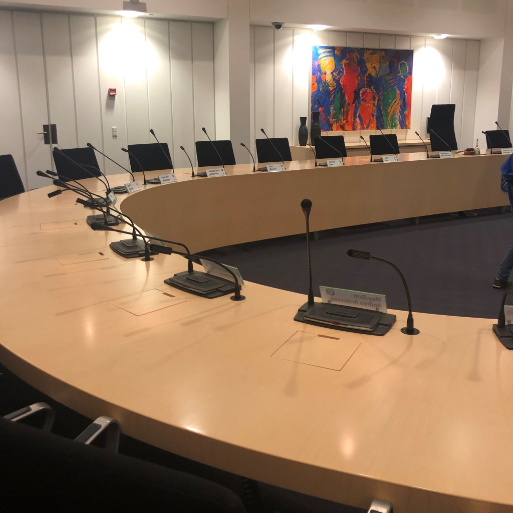 A few weeks ago (before end-of-winter illnesses and school holidays) we were invited to Esbjerg’s rådhus – city hall – for a welcome event with the mayor. I went along with the kids, despite somehow thinking that after 6 months of living here I barely felt like a welcome was necessary. (Only a serial expat would consider themselves a veteran of a place after just a few months.) But everyone who arrived in Esbjerg – international or Danish – during 2018 was invited, and we were promised Danish food and a tour of the building, so off I went to investigate.